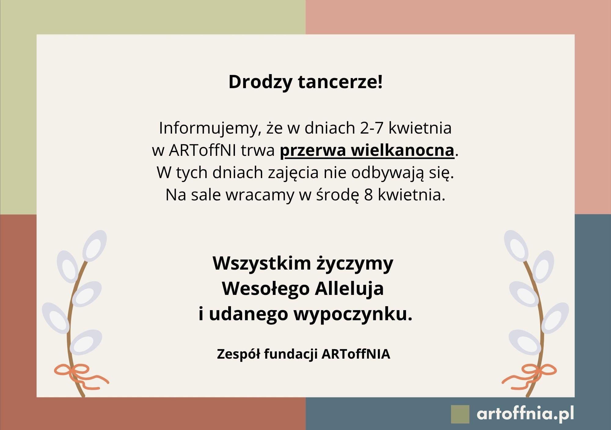 Fundacja tańca i sztuki ARToffNIA działa na rzecz rozwoju i upowszechniania kultury, różnych form sztuki, ze szczególnym uwzględnieniem teatru tańca i sztuk performatywnych.